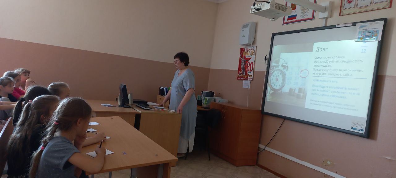 Вторая неделя работы оздоровительного школьного лагеря посвящена финансовой грамотности школьников. Сегодня руководитель лагеря Марченко Ирина Гавриловна провела беседу с обучающимися о значении финансов в жизни. Под руководством воспитателя школьного лагеря Приколоты Натальи Васильевны прошла защита проектов "Расходы школьника". Воспитатель школьного лагеря Сыроваткина Людмила Васильевна организовала финансовую игру "Личные финансы". Личные финансы — это игра, которая помогает детям развивать практические навыки обращения с деньгами. В ходе игры дети сталкиваются с различными ситуациями, требующими принятия финансовых решений. Мероприятия Недели финансовой грамотности нацелены на привлечение интереса школьников темой финансовой грамотности, мотивации их к повышению своего уровня знаний.