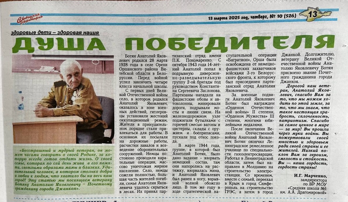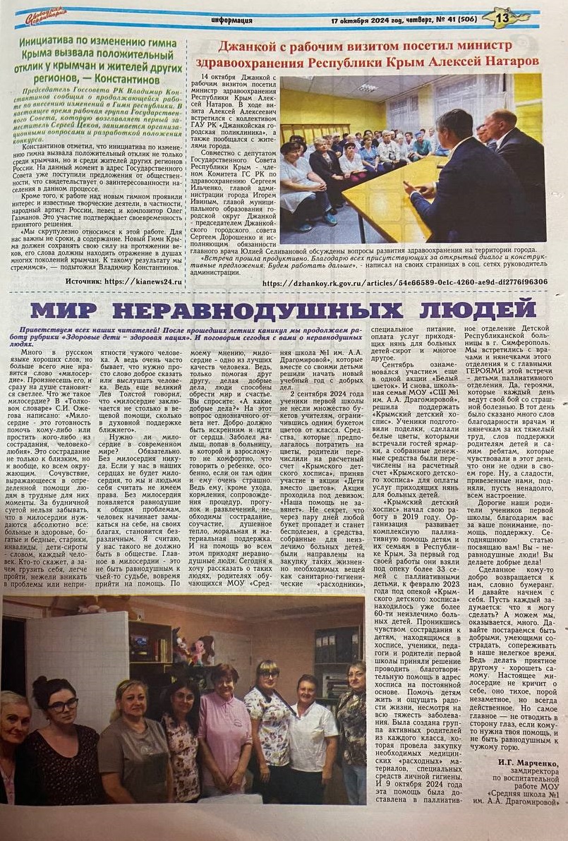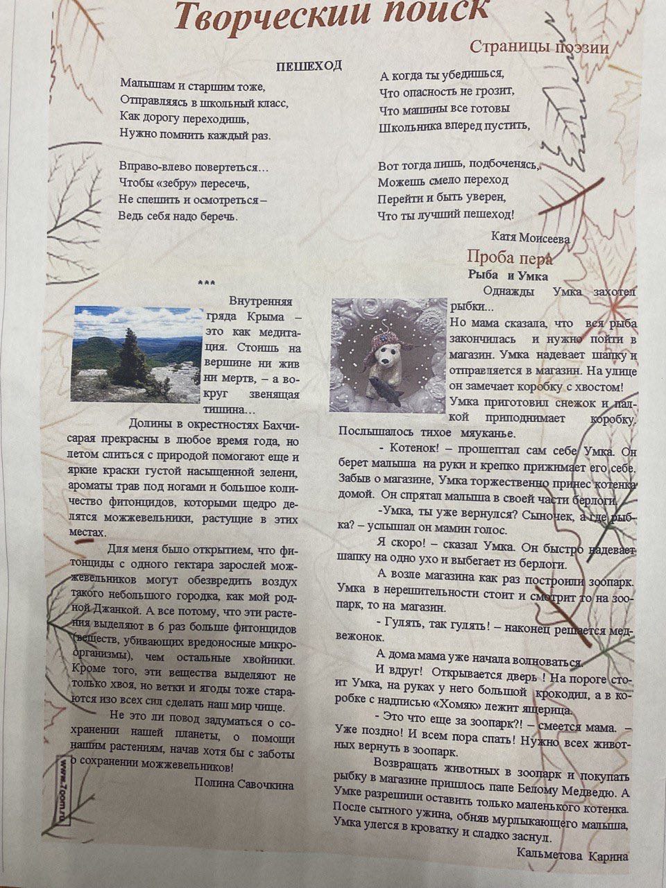 ПУБЛИКАЦИИ СТАТЕЙ ЗАМЕСТИТЕЛЯ ДИРЕКТОРА ПО ВОСПИТАТЕЛЬНОЙ РАБОТЕ МАРЧЕНКО И.Г. В ГАЗЕТЕ "СВОБОДНАЯ ТЕРРИТОРИЯ"