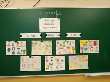 Конкурс мастеров-художников «А что видишь ты?» шестиклассникам было предложено дорисовать лишь некоторые детали к представленным геометрическим фигурам, и показать, что спрятано в этих формах.